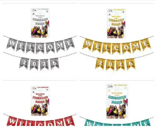 3D WELCOME 2026 BANNER - Vibrant teal Design for New Year Celebrations & Party Decoration