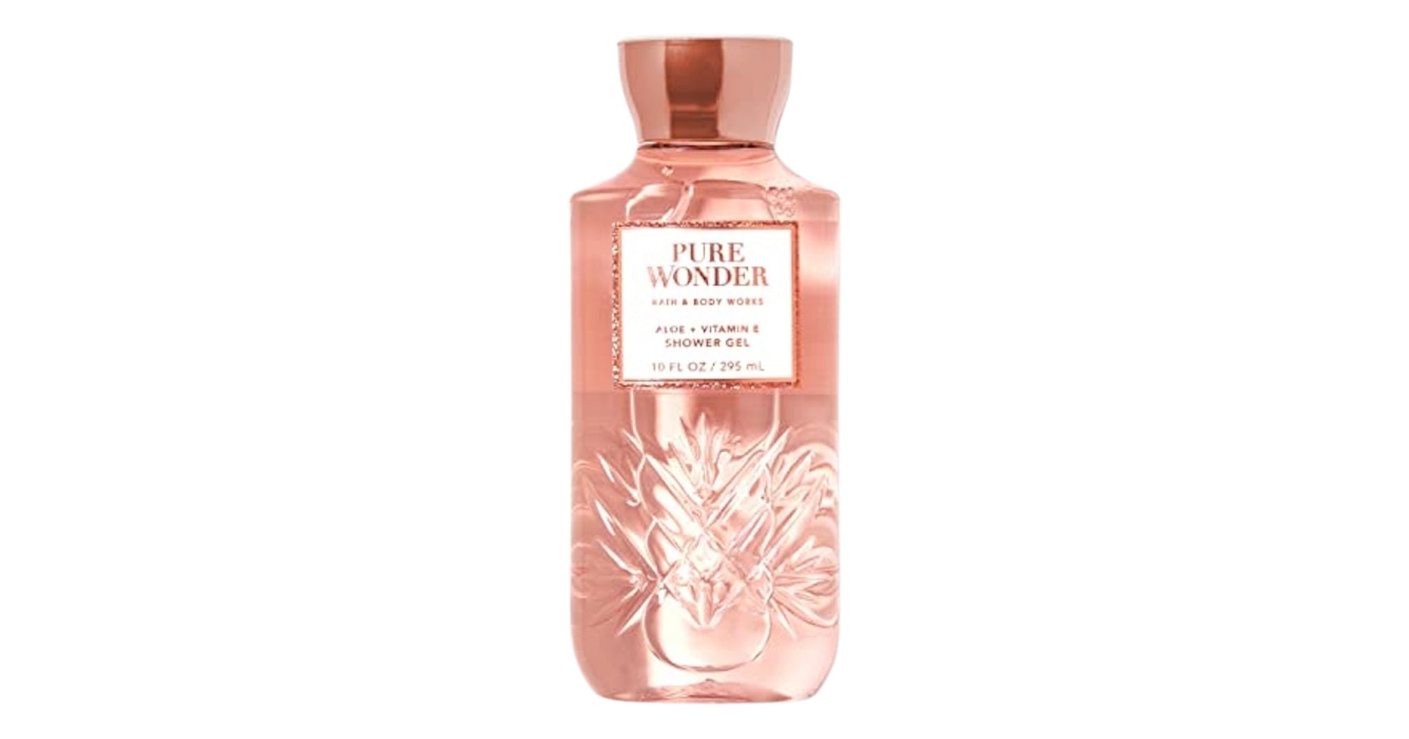 Product details Bath & Body Works Pure Wonder 10oz shower gel Scent notes: Iced Rose, Star Jasmine, Warm White Amber. Contains Aloe, Shea Butter, Cocoa Butter, Vitamin E, Hyaluronic Acid. Cleanses, moisturizes and fragrances the skin.