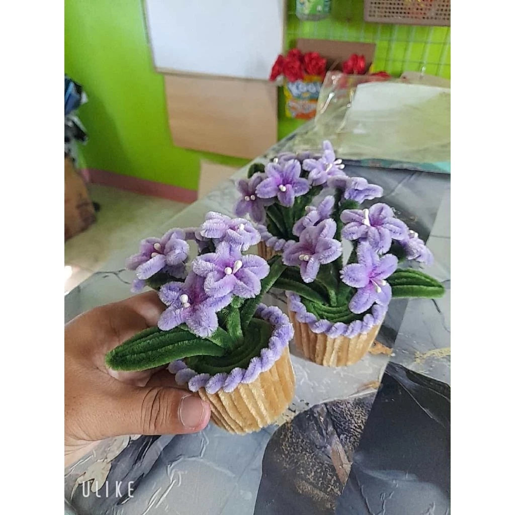 pipe cleaner or fuzzy wire flowers bouquet mini pot in flower vase