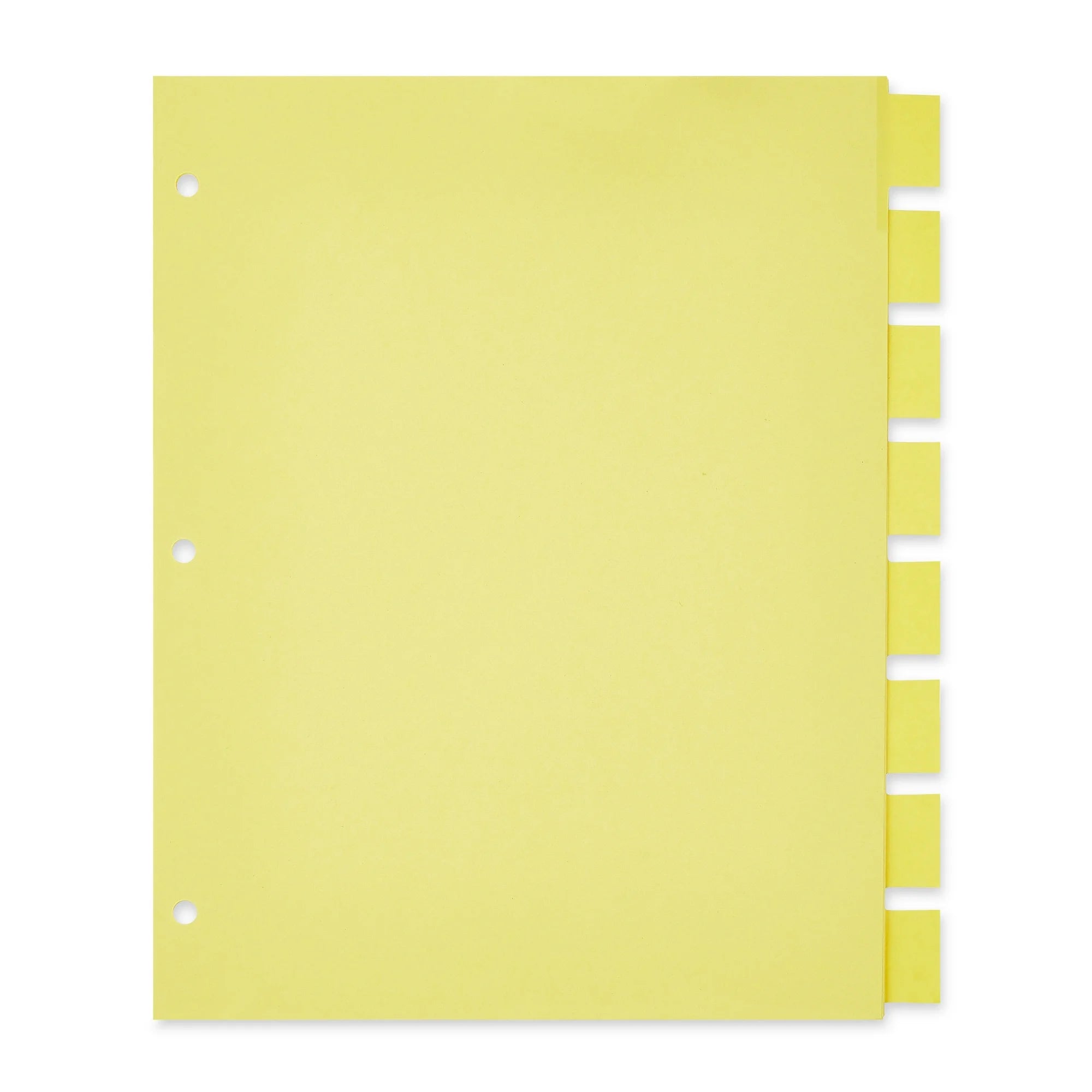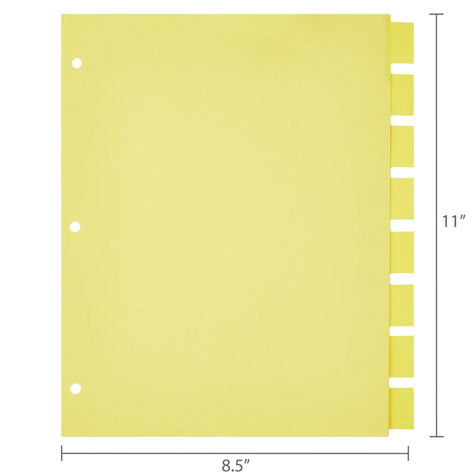 The Pen+Gear 8-Tab Dividers are a binder's best friend. Specially designed to make binder organization a cinch, each divider features three-hole punching on one side for easy insertion into your binder and tabs on the other side that allow for convenient labeling and subject identification at a glance. The buff-colored paper provides a bright contrast to the white stickers for the divider tabs, ensuring your text shows up easily. Plus, there is a set of 24 peel-and-stick stickers included to use for the divider tabs. Keep your schoolwork, paperwork, or other documents organized with our Pen+Gear 8-Tab Dividers.